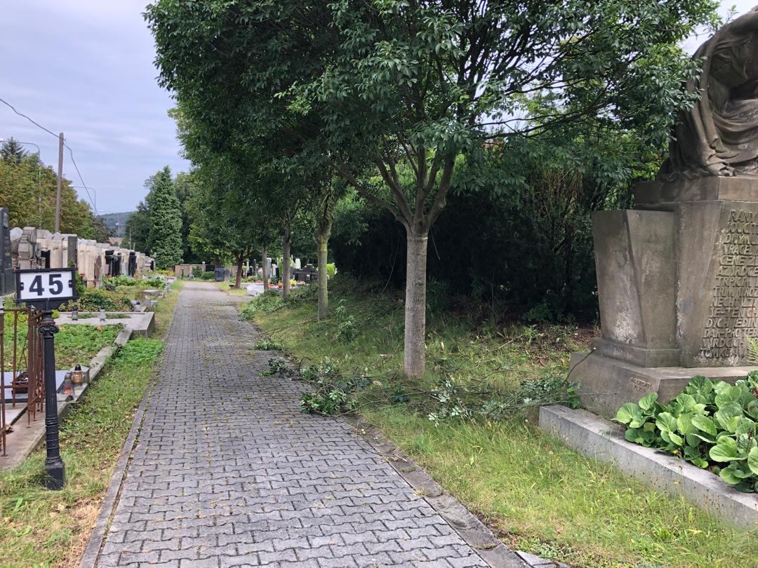 Pěstební a technická opatření na Ústředním hřbitově v Plzni Redukce stromů z důvodu zajištění bezpečnosti návštěvníků hřbitova Instalace bezpečnostních vazeb Likvidace dřevní hmoty Ošetření stromů zdravotním, redukčním, bezpečnostním řezem a obvodovou redukcí Kácení dřevin s využitím vysokozdvižné plošiny