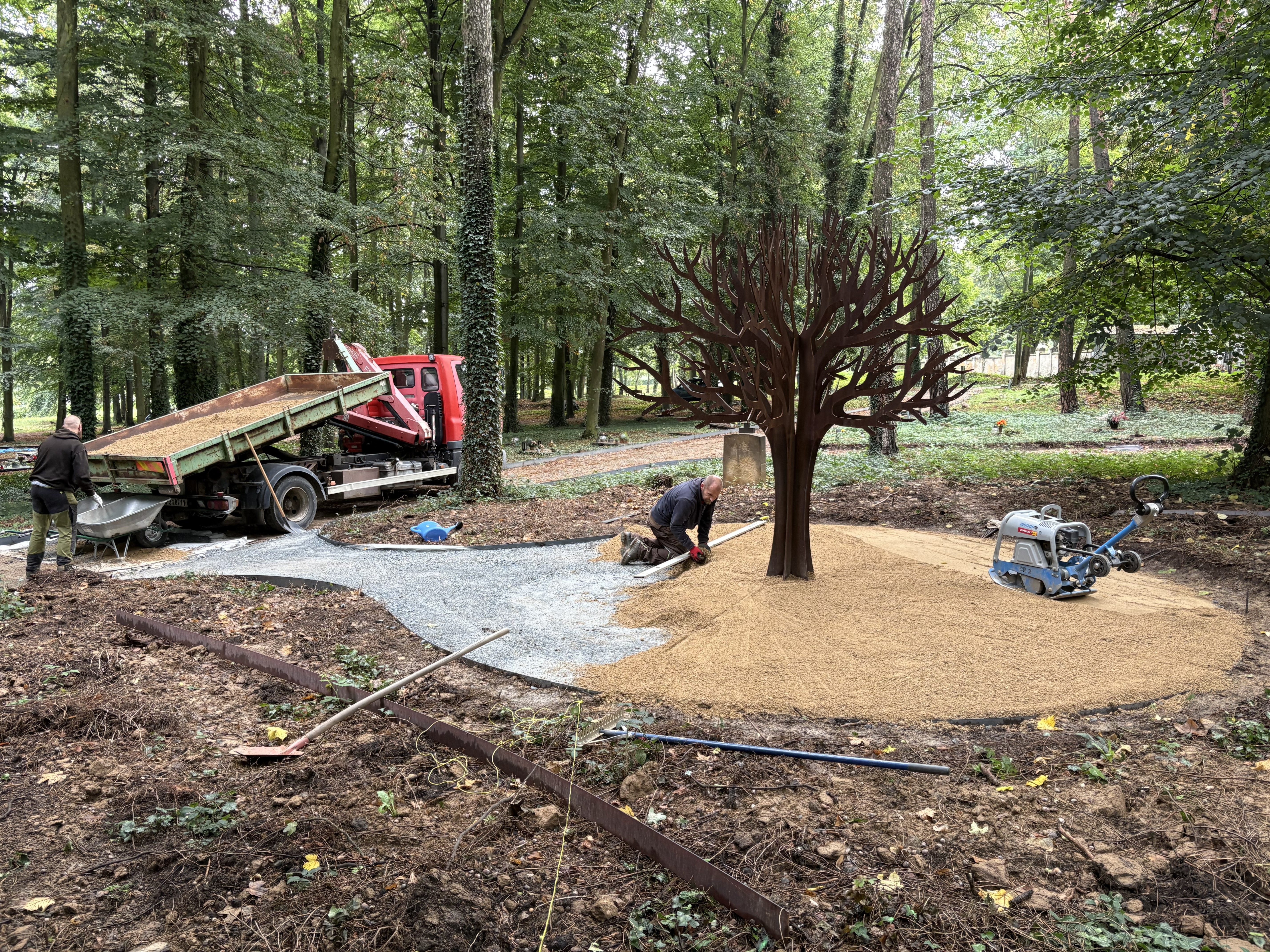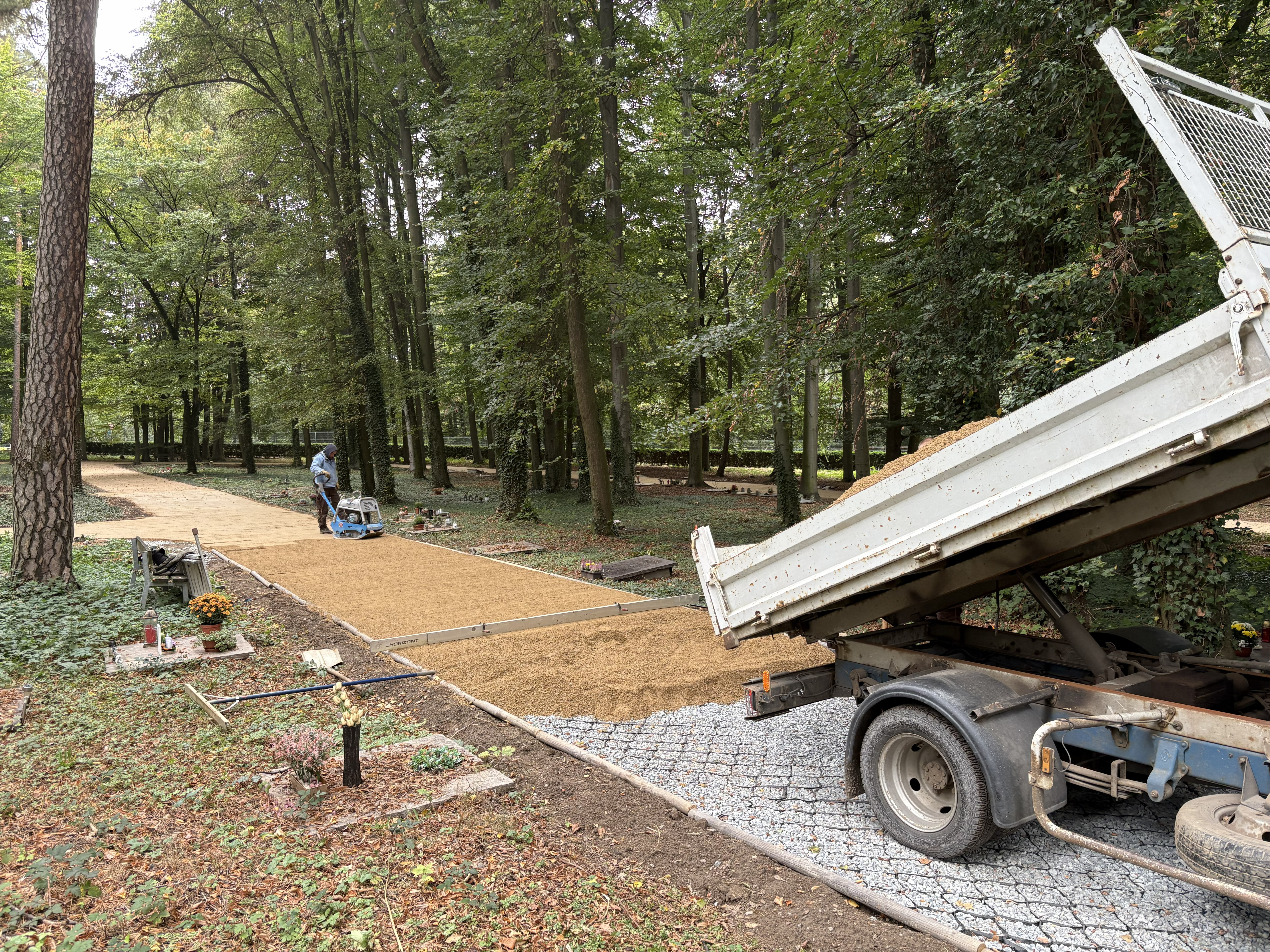 Jak postavit funkční cestu uprostřed lesa a nezničit přitom stromy? Klíčem k úspěchu naší realizace na lesním hřbitově se staly geobuňky.