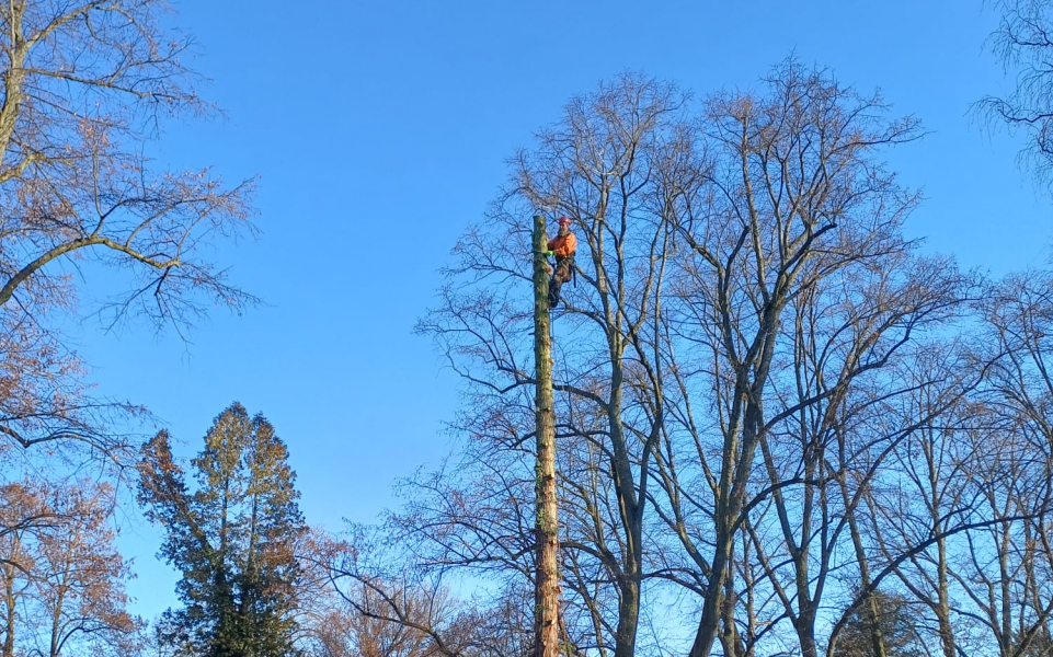 - Arborista postupně strom rozebere - nejdříve kmen odvětví, následně kmen shora dolů rozřeže na špalky a ty bezpečně jeden po druhém spustí na zem